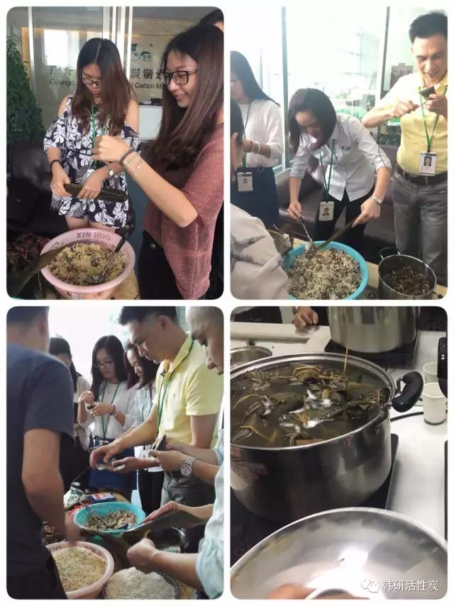 悠悠粽子香, 濃濃端午情,專注于活性炭的韓研人一個(gè)個(gè)爭先恐后地大顯身手,真別說,包粽子還真是一門技術(shù)活,男同胞和女同胞們進(jìn)行對(duì)抗PK賽,幾乎勢均力敵,但最后還是讓心靈手巧的女同胞們奪了冠。
