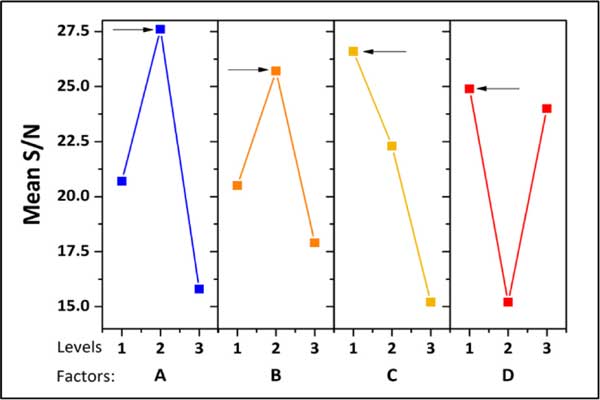 環(huán)己烷和苯在測試活性炭上的二元吸附,有相應(yīng)的穿透曲線;钚蕴縀4對二元混合物中的兩種碳?xì)浠衔镲@示出最高的吸附能力。盡管樣品E4的苯吸附容量較高,但其選擇性低于其他活性炭(E9>E5>E6>E3>E1>E8>E2>E4>E7)。所有活性炭都優(yōu)先吸附苯,但樣品E1、E4、E5和E8顯示出很高的苯吸附能力。填充床的小數(shù)容量比在單組分氣體吸附更大的二進制吸附。當(dāng)使用低吸附物濃度時填充床的吸附效率增加。表明活性炭材料可以更容易、更有效地吸附傳質(zhì)區(qū)中的碳?xì)浠衔。在二元混合物分離中,對活性炭苯吸附能力影響最大的因素是:活化劑、浸漬比和物理活化時間。吸附劑E1、E4、E5、E6和E8顯示出很好的信噪比。圖3說明了在測試條件下制備活性炭的平均S/N比?傮w而言,制備具有高吸附能力的活性炭以從二元混合物中分離苯的合適條件已驗證。