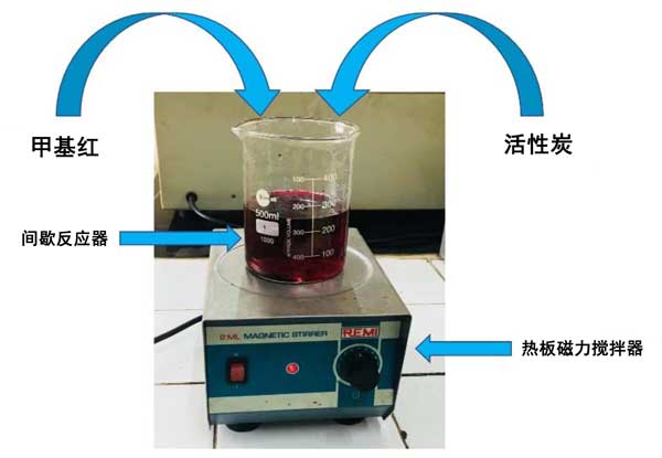 實驗的目的是研究使用橘皮活性炭作為吸附劑對甲基紅的吸附。通過監(jiān)測各種基本參數(shù),如吸附劑劑量(0.25–1.25g/L)、甲基紅濃度(100–400mg/L)、溫度(40–60℃)、接觸時間,進行分批吸附研究(10–60分鐘)和pH(3–11)。間歇式反應器是進行所有吸附研究的地方。吸附前后,廢水上清液中的甲基紅染料濃度用紫外-可見分光光度計測量。之后,在標準校準曲線的幫助下計算流出物中的濃度。每個實驗在受控設(shè)置下進行多次,取平均值用于后續(xù)計算。圖1表示批量吸附研究的實驗裝置。