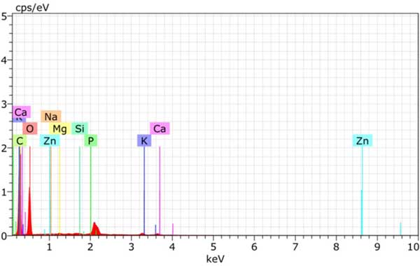 揮發(fā)物含量直接在自動近似分析儀中測量。當爐油樣品燃燒完全時,不可燃殘留物通過灰分含量反映出來。在此過程中使用可承受300至400℃溫度的高溫馬弗爐。在空氣中存在氧氣的情況下,某些物質(zhì)(如水和其他揮發(fā)性元素)會燃燒,而其他物質(zhì)(包括有機分子)會蒸發(fā)。通過比較灰化前后樣品的重量可以計算出樣品中的灰分含量。固定碳的計算方法是從100中減去揮發(fā)性物質(zhì)的百分比、水分含量和灰分含量;钚蕴康亩逊e密度是借助密度計。用能量色散X射線分析法分析活性炭的化學成分圖2;钚蕴康腅DAX分析具有由C、O、Zn等組成的元素。