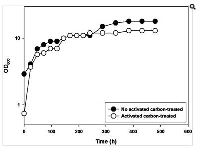 據(jù)報(bào)道,酸水解產(chǎn)物中的呋喃衍生物(糠醛和5-羥甲基糠醛)和酚類化合物是有毒的并且可以抑制生物乙醇生產(chǎn),在酸水解產(chǎn)物中發(fā)現(xiàn)約0.6-3.0g / l的水平。以前的報(bào)告回顧了酸性水解產(chǎn)物的治理。活性炭處理導(dǎo)致呋喃衍生物減少92%,5-羥甲基糠醛減少68%,酚類化合物總量減少約1.25-0.5克/ 升。通過(guò)活性炭處理從水解產(chǎn)物中去除有毒物質(zhì)是非常可靠的。