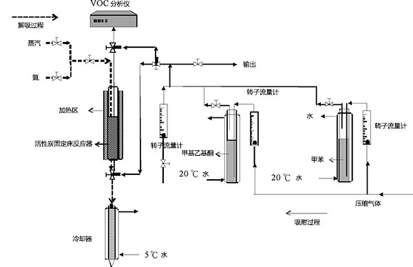 圖1.活性炭連續(xù)交流吸附解吸過程的實驗裝置。