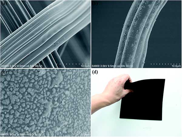 圖2:活性炭復(fù)合材料纖維的SEM和實物圖。