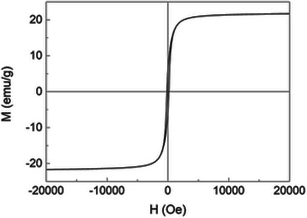 活性炭復(fù)合纖維材料在室溫下-20000至20000 Oe范圍內(nèi)的磁滯回線在圖3顯示,其形狀是典型的S曲線,對應(yīng)于超順磁行為。包括飽和磁化強(qiáng)度Ms,磁矯頑力HC和剩余磁化強(qiáng)度Mr的磁特性;钚蕴繌(fù)合材料的Ms低于塊狀Fe3 O4,這可以通過活性炭載入Fe3O4納米粒子來解釋,這與發(fā)現(xiàn)的結(jié)果非常一致。