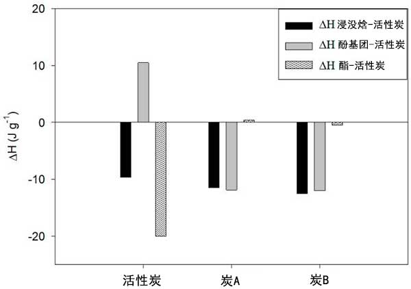 為了確定酯基在吸附質-吸附劑相互作用中的貢獻,從對羥基苯甲酸甲酯-活性炭和苯酚-活性炭的相互作用焓開始計算相互作用的焓酯-活性炭。對于該計算,假設焓是分子的加成組成性質,因此對羥基苯甲酸甲酯-活性炭的相互作用焓對應于苯酚和酯與活性炭相互作用焓的總和。圖4中顯示了對羥基苯甲酸甲酯-活性炭,苯酚-活性炭和酯基團在水中吸附物-吸附劑的相互作用中的貢獻。