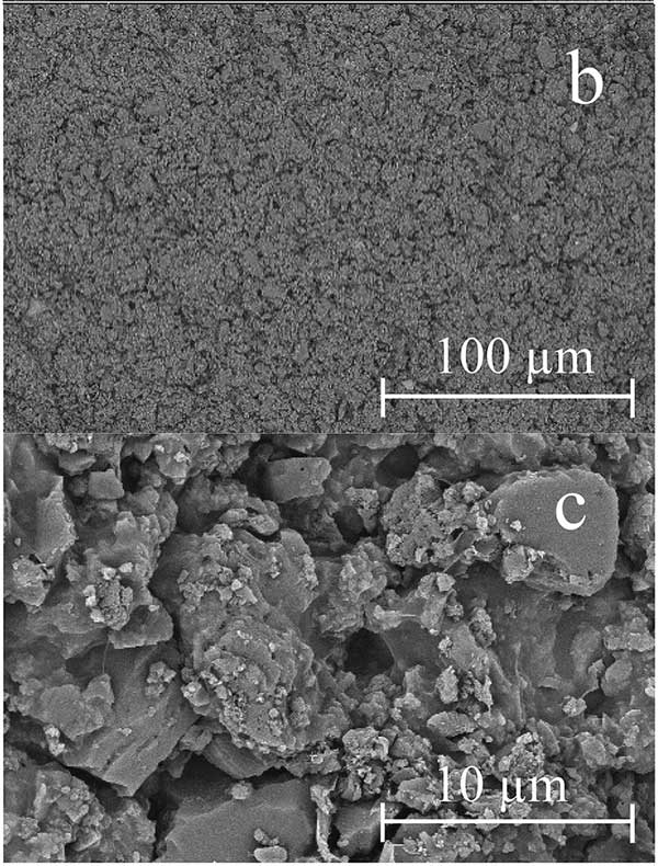 制成的活性炭外表面的SEM圖像顯示在圖2中;钚蕴壳蝮w的形狀看起來略呈橢圓形,與高球形度值和稍低的比具有良好的相關(guān)性。橢圓形狀可能源于與凝固浴撞擊時(shí)液滴的扁平化。由于快速凝固,液滴沒有足夠的時(shí)間回到理想的球體(具有很低的表面張力)。