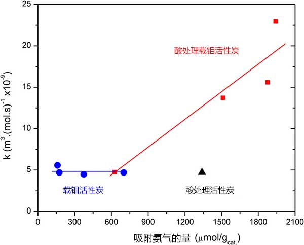 3:活性炭吸附的氨氣與第二級(jí)酯化反應(yīng)速率常數(shù)之間的相關(guān)性。