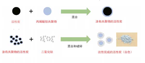 活性炭通常用作出色的多功能吸附劑;钚蕴康亩嗫妆砻婵赏ㄟ^將極薄的化合物層粘附到較大的碳表面積上來使各種化學(xué)物質(zhì)失活。它們通常用于吸附去除飲用水和工業(yè)用水中的顏色,氣味,味道和不良有機和無機污染物。此外,活性炭常用于許多化學(xué),食品和其他物質(zhì)的純化。因此,基于我們的發(fā)現(xiàn),活性炭對各種產(chǎn)生體味的化合物表現(xiàn)出高吸附能力,改性后更強。將平均直徑為9.4或40.5μm的活性炭粉與丙烯酸銨共聚物溶液在超純水中完全混合。將平均直徑為0.25μm的二氧化鈦粉末以5-20g的不同濃度添加到混合物中,以制造相應(yīng)的改性活性炭。在115℃下將樣品干燥2小時后,使用破碎機通過均勻研磨獲得除異味活性炭(圖1)。并且比較了活性炭與除異味活性炭中所含活性炭的吸附能力。